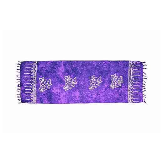 MANUMAR sarong donna non trasparente come mini-gonna (155x55cm) | pareo bambini telo da mare | gonna a portafoglio | foulard leggero lilla chiaro sfrangiato con motivo farfalla | spiaggia |